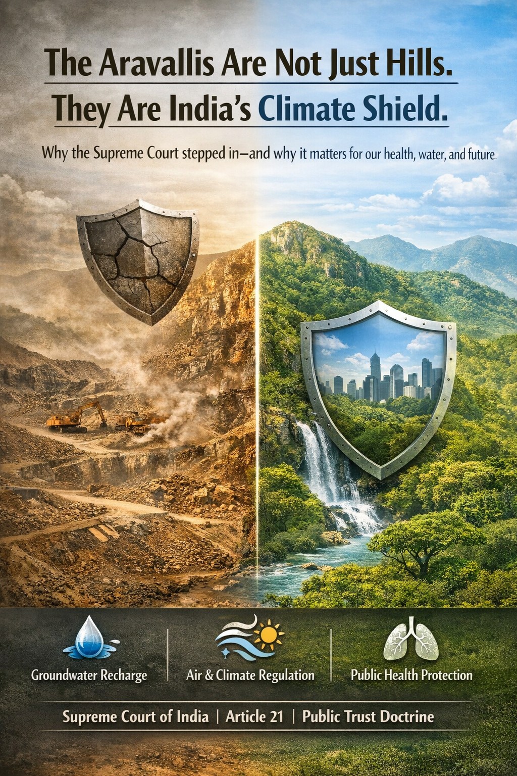 The renewed focus on the Aravalli Hills following the Supreme Court of India’s latest guidelines is not merely an environmental debate—it is a constitutional moment. Stretching across Gujarat, Rajasthan, Haryana and Delhi, the Aravallis are among the world’s oldest mountain systems and function as a critical ecological shield for north-western India. They prevent desertification from the Thar, recharge groundwater aquifers, regulate regional climate, and support biodiversity that directly sustains human life in one of India’s most densely populated regions.